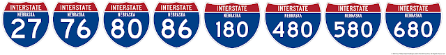 | The shields of Nebraska's primary and auxiliary Interstate highways. |